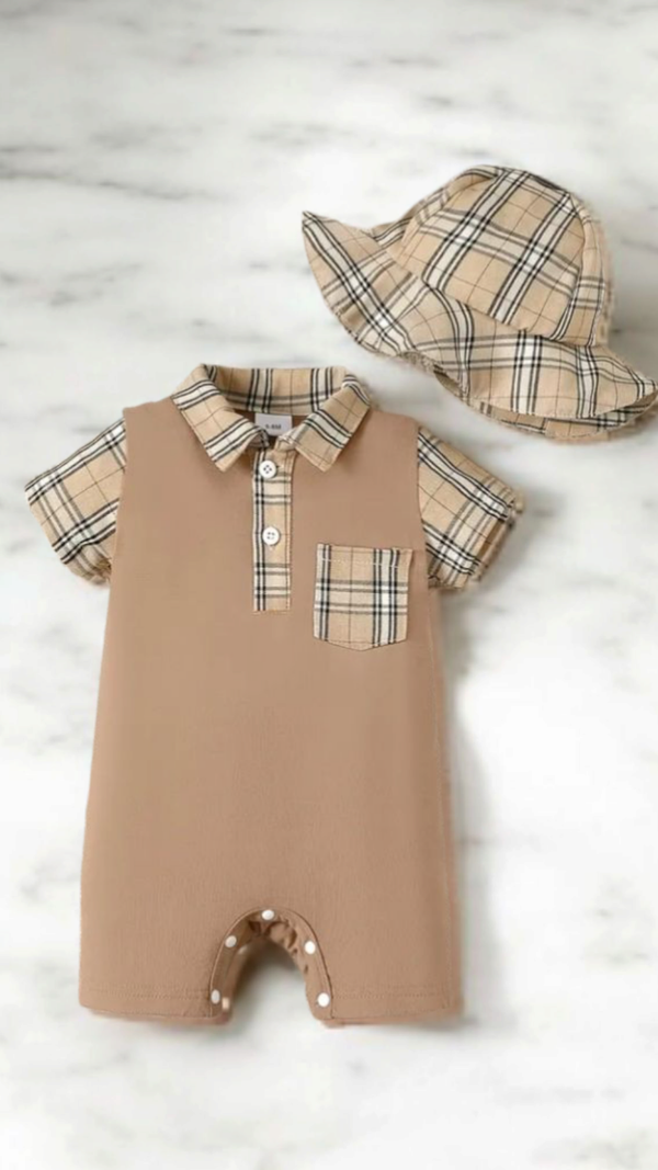 • Combinaison legère avec petit chapeau assorti pour l'été.